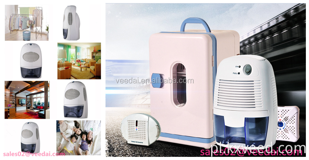Mini dehumidifiers służą do utrzymania suchego powietrza, pobierając wilgoć z okolic.