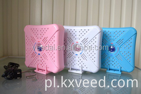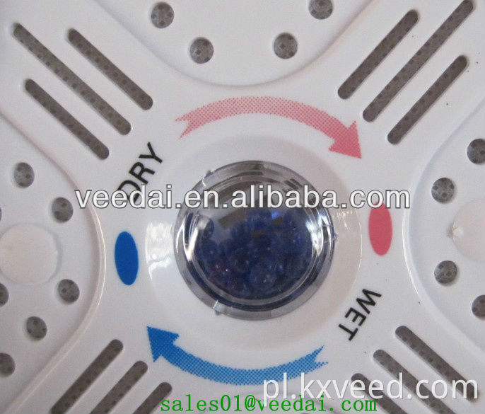 Gdy okno wskaźnika jest niebieskie, umieść urządzenie w odpowiednim miejscu, urządzenie przyjmie wilgoć z otaczającego obszaru (urządzenie wzrośnie, gdy zbiera wilgoć). Gdy urządzenie jest pełne, okno wskaźnika stanie się różowe .PLUG w urządzeniu i naładuj noc lub jednostkę okno wskaźnika powraca do niebieskiego. Odchórnik będzie teraz gotowy do użycia.
